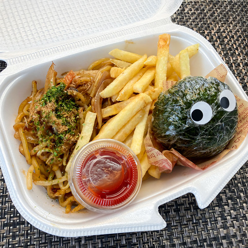 みんな大好きポテトフライと、80gほどのminiおむすび付(中身は何もない白むすびです)