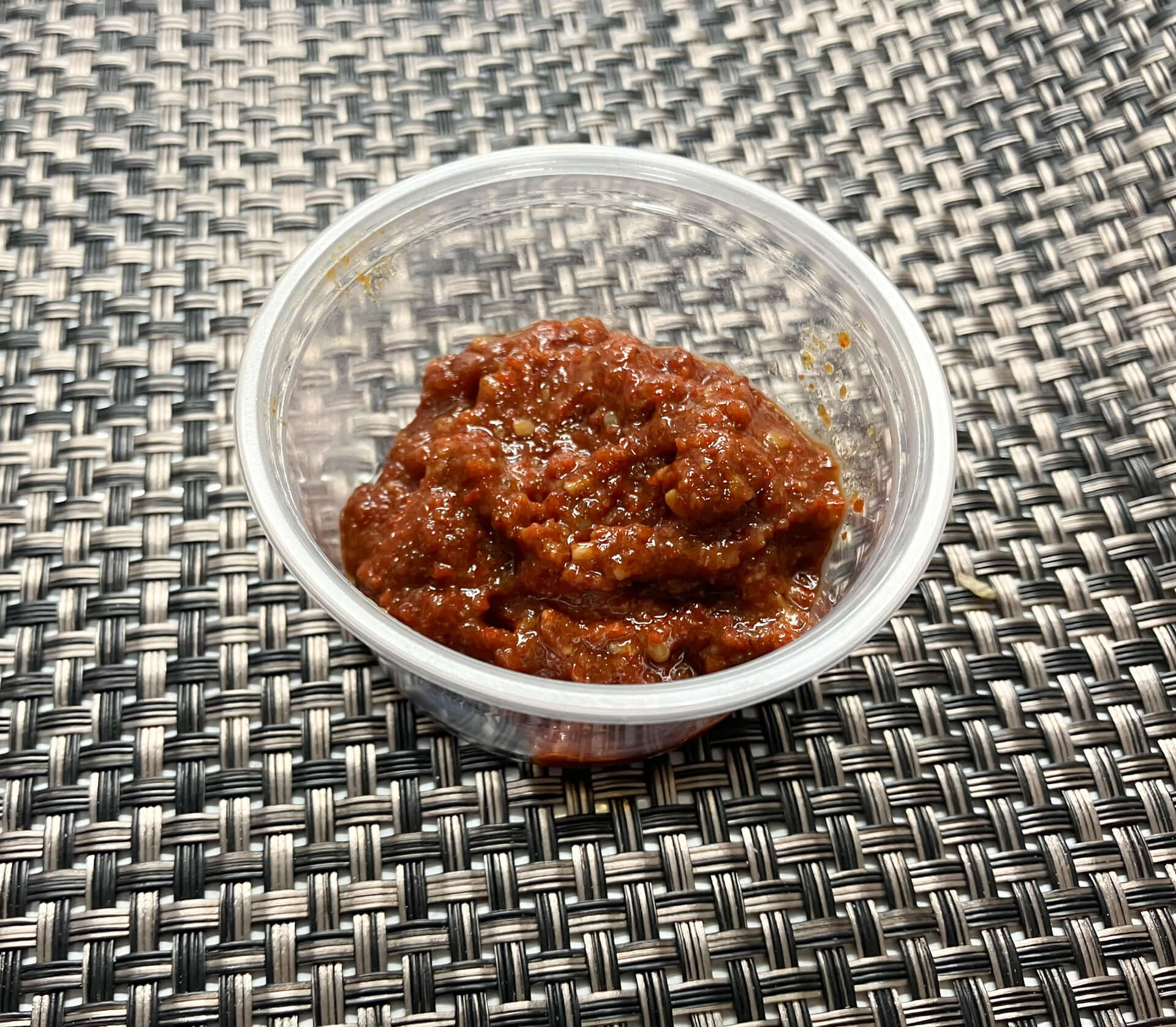 幸むすびオリジナルの辛味ダレ!お肉はもちろん、ご飯やお好み焼きにも合います!