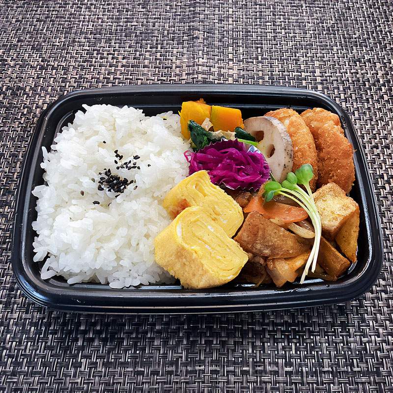 小さめの容器に隙間なくおかずを詰め込んだ、